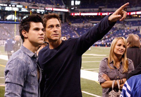 No Facebook oficial de Taylor Lautner, foi postada essa nova foto em um jogo do IndianapolisColtscomRobLowe.